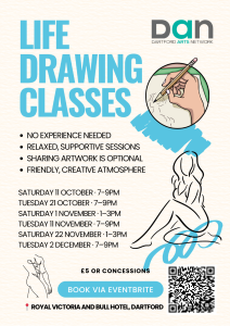 Dartford Arts Network hosts 6 x sessions of weekly informal and fun 2hr life drawing sessions.